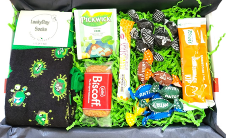 Let op: De kaart en smaken van producten kunnen afwijken van de getoonde foto. Het thema van het pakket is altijd hetzelfde zoals getoond en we zullen zorgdragen dat het pakket, zo ver mogelijk, identiek wordt verwerkt.