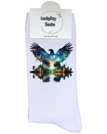 Onze computer print sokken hebben allen een zwarte voet van 100% katoen met een polyamide schacht.