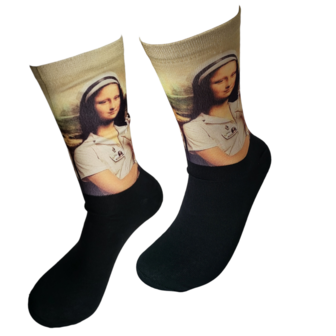 Onze computer print sokken hebben allen een zwarte voet van 100% katoen met een polyamide schacht.