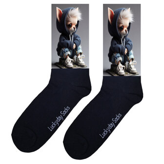 Onze computer print sokken hebben allen een zwarte voet van 100% katoen met een polyamide schacht.