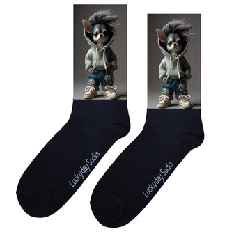 Onze computer print sokken hebben allen een zwarte voet van 100% katoen met een polyamide schacht.