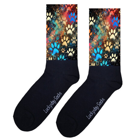 Onze computer print sokken hebben allen een zwarte voet van 100% katoen met een polyamide schacht.